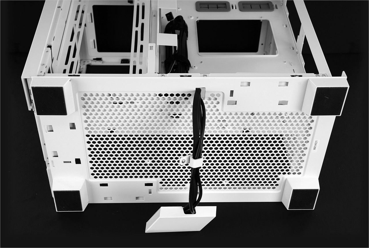케이스 하단에도 2.5인치 SSD 및 3.5인치 HDD 장착 공간이 제공된다. 2.5인치 SSD는 4개, 3.5인치 HDD는 2개 장착할 수 있다. 다만 HDD나 SSD를 장착하면 하단 통풍구를 가리는 부분이 생기기 때문에 케이스에 유입되는 공기가 줄어들게 된다.
