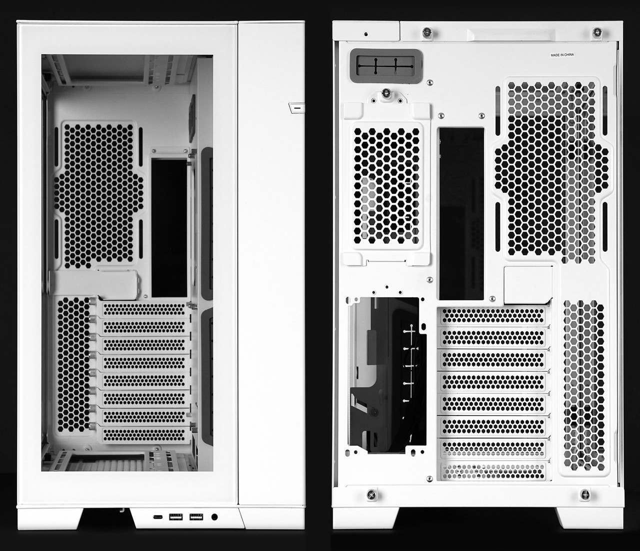 케이스 전면 상단 오른쪽에는 PC 전원 버튼이 있고 가장 아래쪽에는 USB 포트를 비롯한 입출력 인터페이스가 있다. 후면에는 타공망 형태로 통풍구가 다수 제공된다. 기존 제품인 PC-O11 Dynamic과 달리 120mm 규격 쿨링 팬도 장착할 수 있어서 PC 작동 시 내부 열기를 빠르게 배출 가능하다.