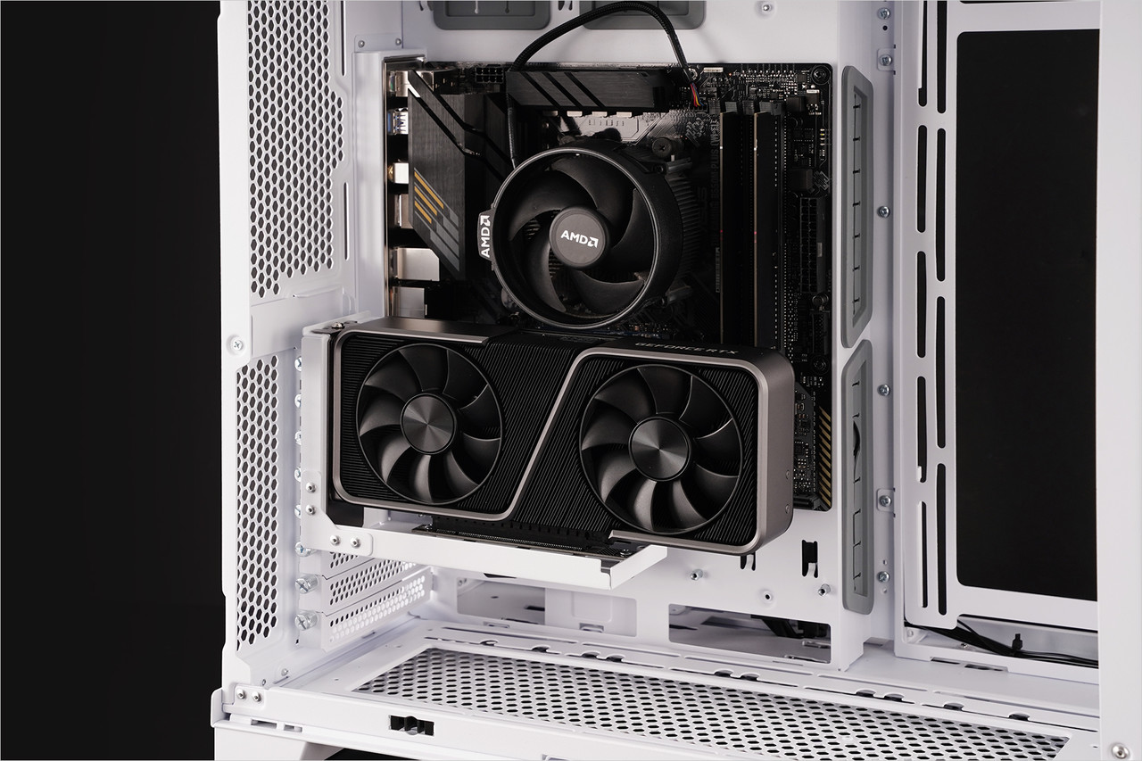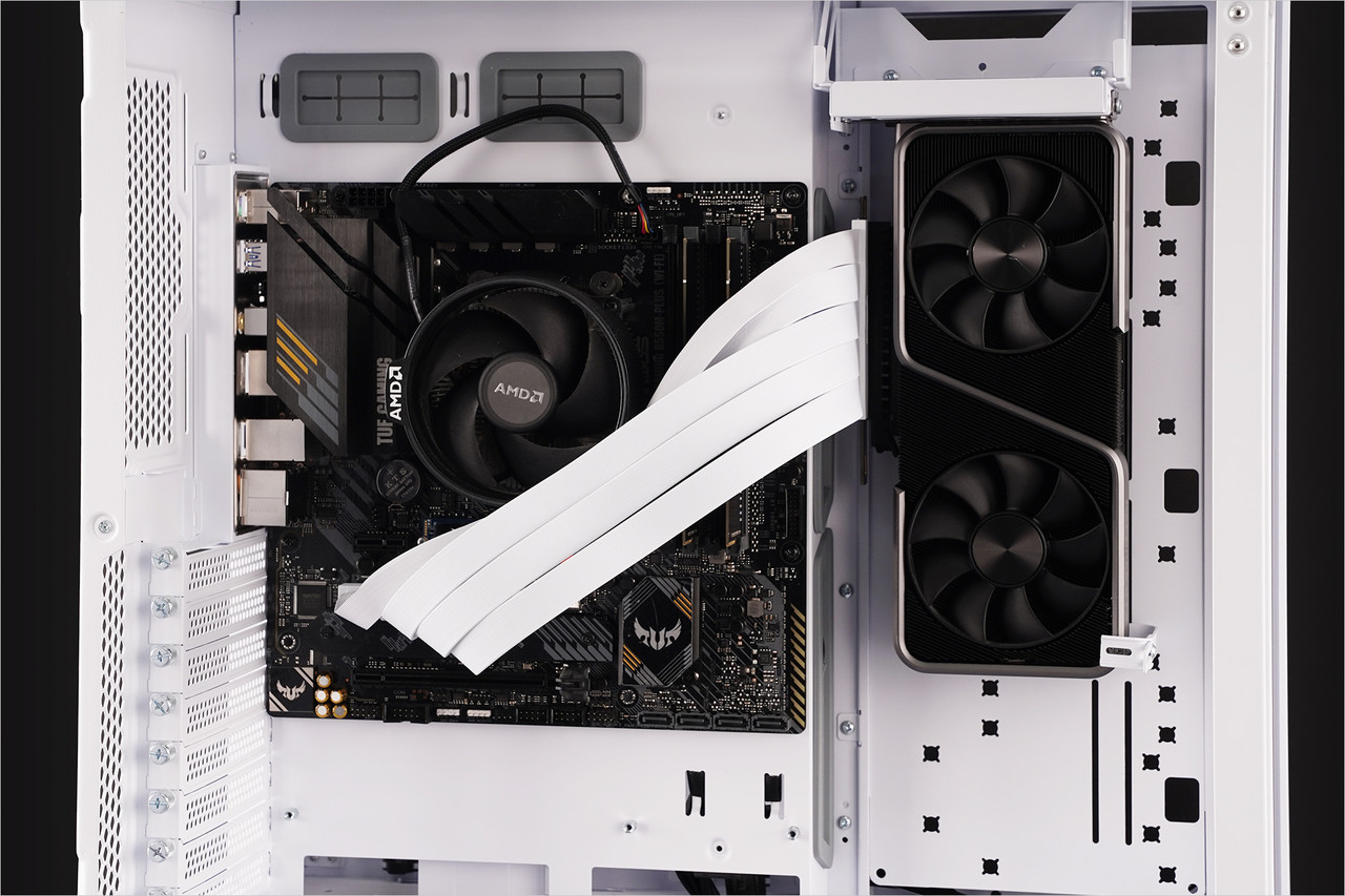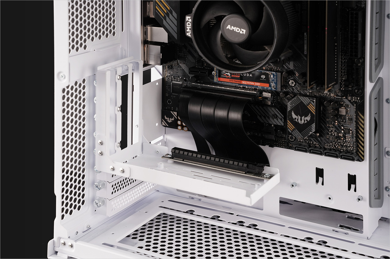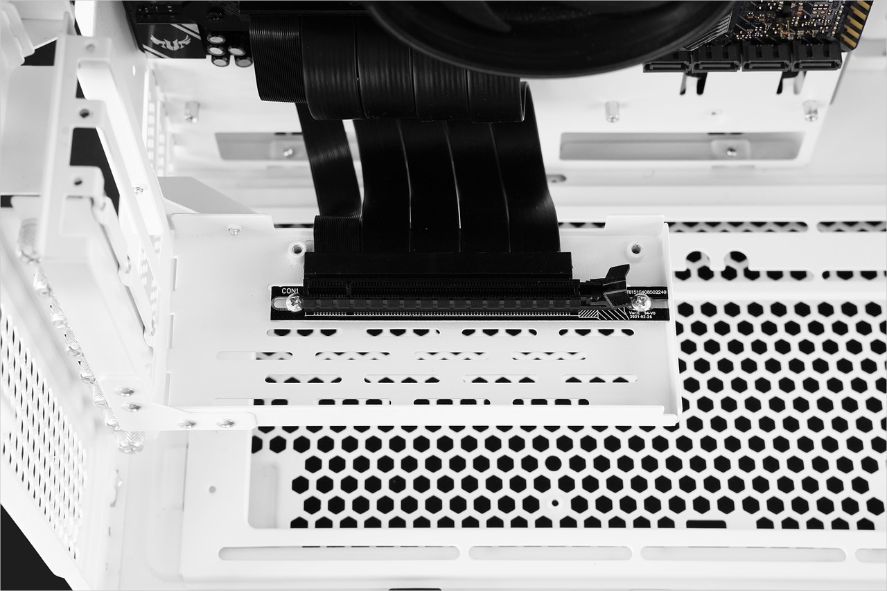 그래픽카드 출력 인터페이스가 케이스 상단 쪽을 향하고 사이드 트레이 쪽에 장착되므로 그래픽카드가 메인보드는 물론 CPU 발열에 영향을 받을 가능성이 적다. 그리고 라이저 케이블을 연결한 슬롯을 제외한 모든 확장 슬롯을 문제없이 활용할 수 있다.