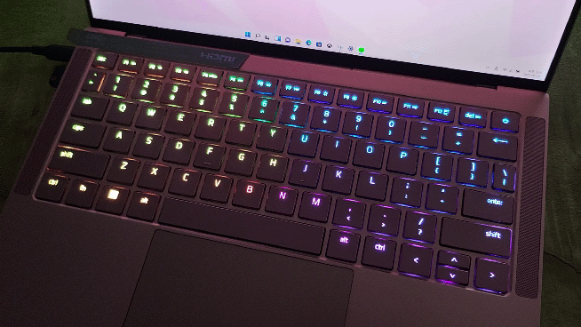 RGB 효과는 엄청나게 화려하다. 다른 것도 아니고 제작사가 그 게이밍 기어의 명가 레이저다. 레이저 시냅스를 통해 레이저 크로마 RGB 효과를 적용할 수 있다. 광량도 높은 편이라 키 밝기를 최대로 높이면 밝은 곳에서도 선명하게 효과가 보인다. 또한, 게이밍 노트북은 아니지만 특정 게임을 즐길 때 RGB 효과가 지원된다. 예를 들어 오버워치 등을 구동하면 캐릭터를 선택할 때 해당 캐릭터를 상징하는 색상에 맞춰 RGB 효과가 변경된다.