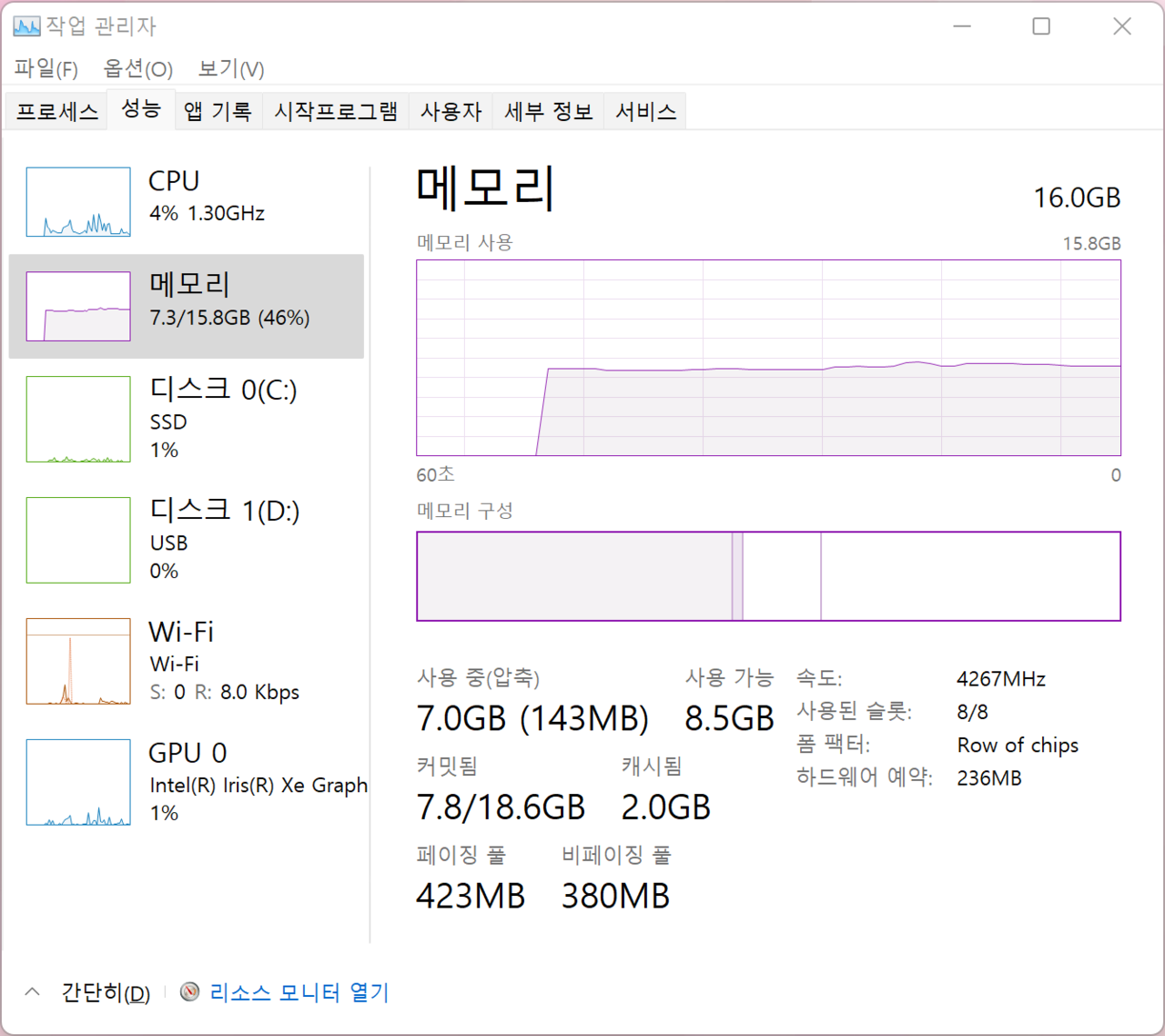 메모리 – 16GB LPDDR4x 4266MHz(온보드/시스템 듀얼 메모리 지원)