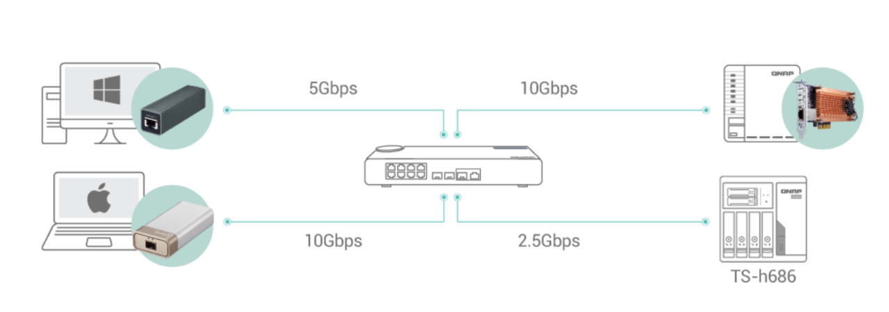 2.5Gbe 연결성이 뛰어난 것도 주목할 만하다. TS-h686은 2.5GbE 랜포트를 4개 갖췄다. 표준 이더넷 1Gbe보다 2.5배 속도가 향상된 2.5기가비트 환경에 맞춰 생산성을 향상시킬 수 있다. 또한 실질적으로 10GbE 제품군의 가격이 고가라 접근하지 쉽지 않는데, 2.5GbE를 선택해 현실적인 범주 내에서 이더넷 속도를 상향시킬 수 있다.