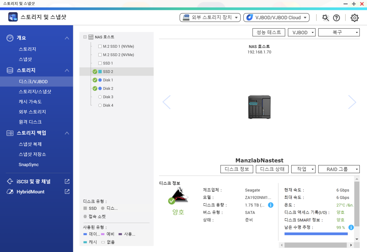 3.5인치 4베이 HDD 및 2.5인치 2베이 SSD 사용 가능