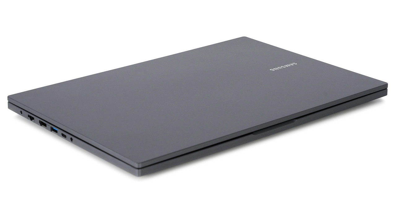 그런데 노트북 플러스2 NT550XDZ-AD3A는 가성비 제품군에 속하지만 상당히 깔끔하다. 미스틱 그레이 색상으로 리뷰를 진행했는데, 얼핏 보면 하이엔드 제품군처럼 보일 정도로 상판 및 측면 색상이 상당히 잘 뽑혔다. 버터를 바른 구운 식빵을 잡았던 엄지로 상판을 꾹꾹 눌러봤는데, 지문이 보이거나 하지는 않았다. 또한, 직선을 강조한 디자인이긴 한데 모서리가 곡선 형태로 부드럽다. 덕분에 노트북을 만질 때 촉감이 좋은 편이다.