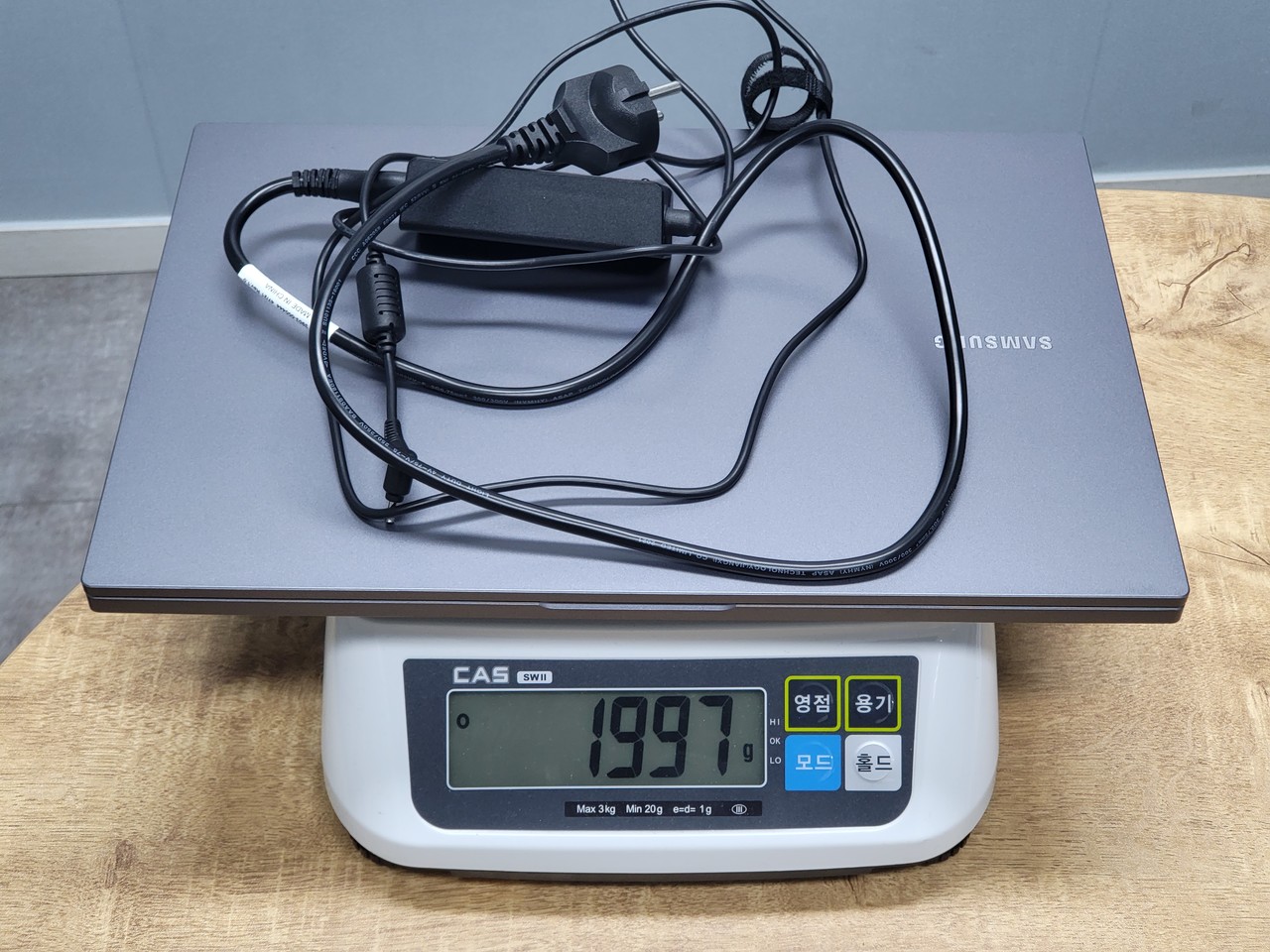 무게는 1.81kg으로 일단 2kg 미만이다. 어댑터를 추가하면 2kg 정도인데, 백팩을 사용하면 별 어려움 없이 휴대할 수 있다. 어댑터는 40W 제품군으로 다른 두꺼운 노트북 충전기보다 상당히 크기가 작다. 배터리는 43Wh다. 야외에서 사용 시 배터리 조절을 잘해야 한다.