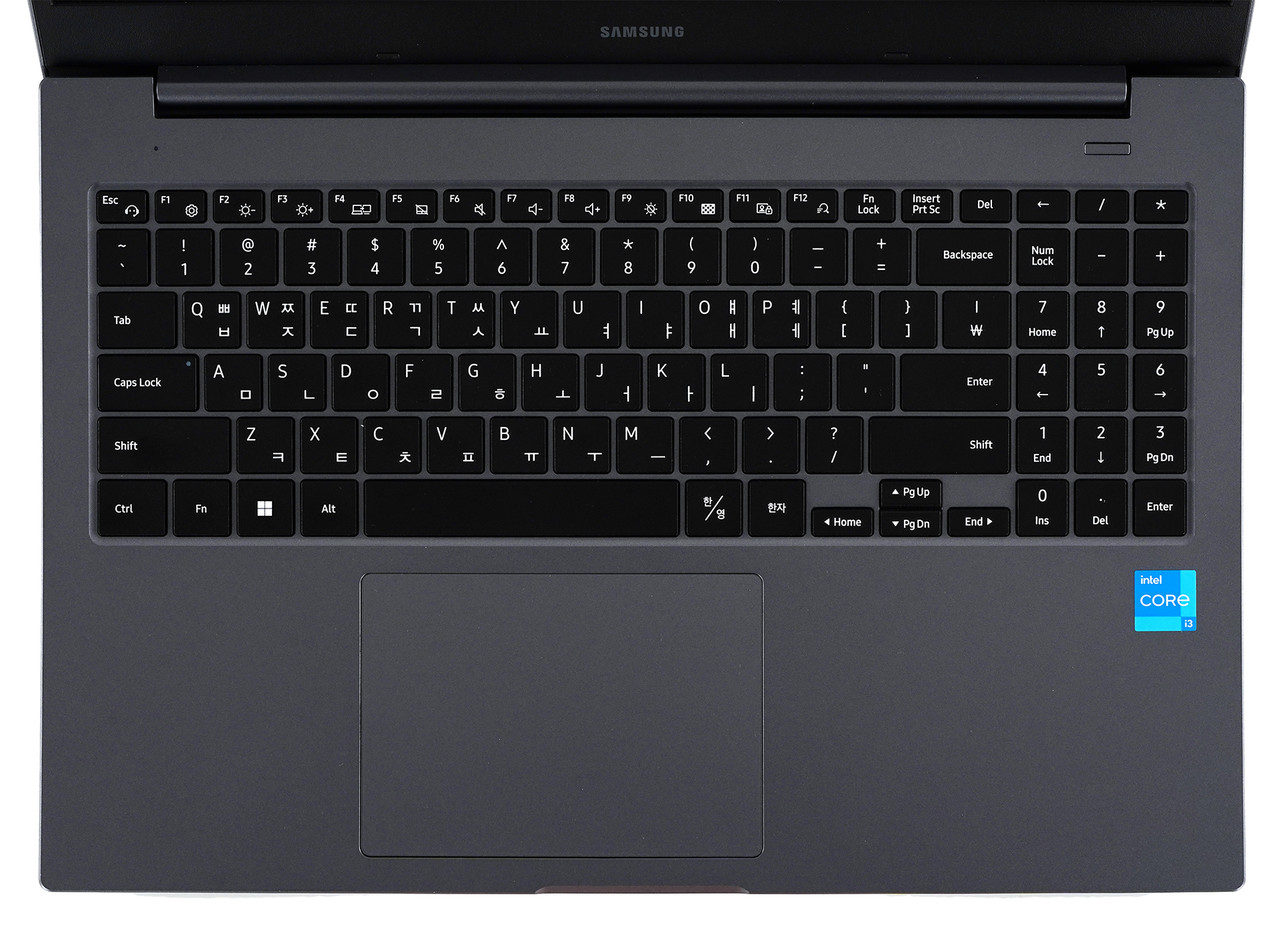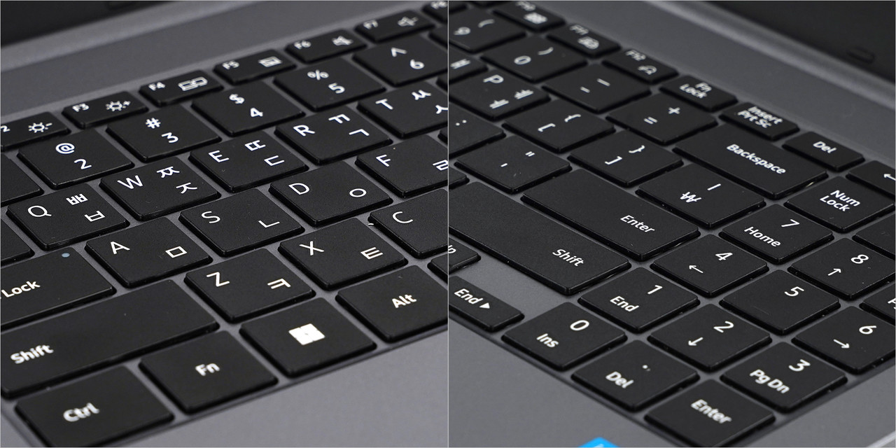 키보드는 익숙한 배열이며 우측에 숫자키가 있어 생산성 작업에도 적합하다. 특히 우측 시프트 크기가 일반 키보드처럼 길다. 외산 노트북 중 우측 시프트를 줄이고 방향키를 늘린 제품군이 종종 있는데, 우측 시프트를 주력으로 사용할 경우 타건 시 적응이 잘 안 될 수 있다. 하지만 노트북 플러스2 NT550XDZ-AD3A는 우측 시프트 크기가 정상적이라 금방 적응할 수 있다. 키가 눌리는 깊이는 낮은 편이다. 터치패드는 120x82.4mm로 넓은 편이다. 또한, 정중앙에서 살짝 왼쪽으로 배치돼 있다. 덕분에 팜레스트에 오른손을 올려두고 쓰기 편했다.