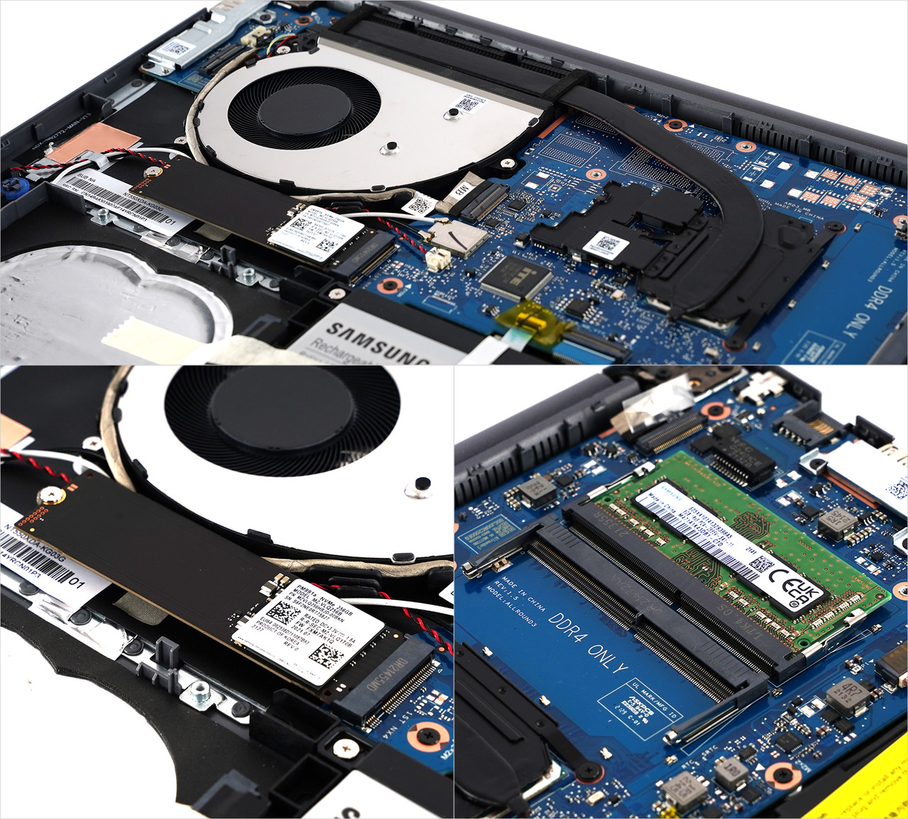 추가로 업그레이드가 쉬운 것도 주목할 만하다. 노트북 분해에 익숙하지 않다면 보통 센터에 가서 업그레이드하게 되는데, 노트북 플러스2 NT550XDZ-AD3A는 별다른 도구가 없어도 해당 슬롯에 금방 접근할 수 있다. 이를 통해 메모리 및 저장장치를 쉽게 업그레이드할 수 있다.