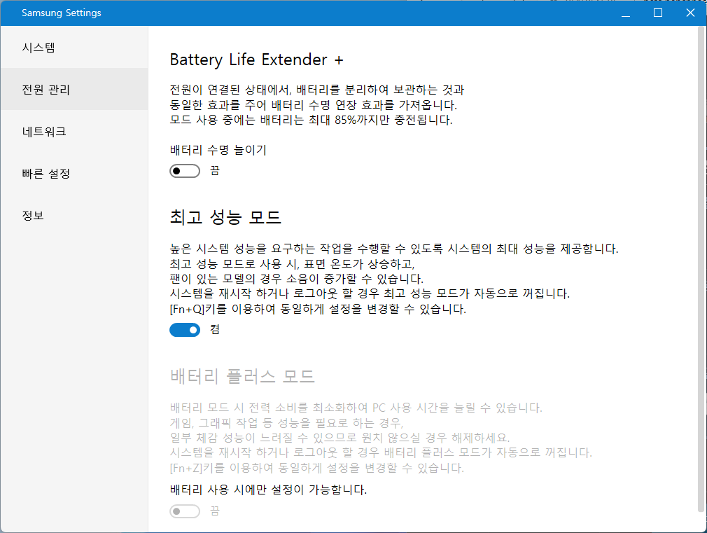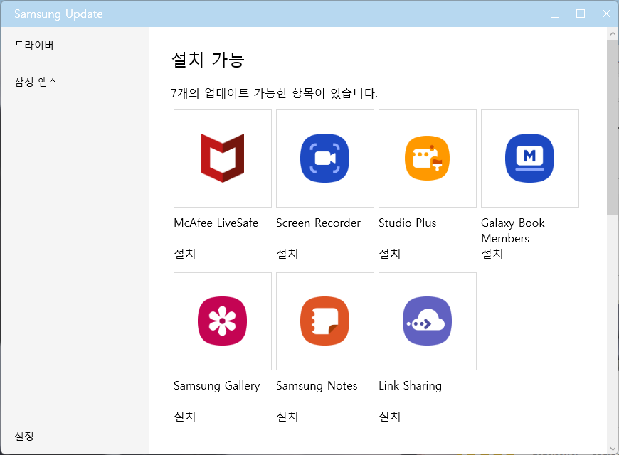 또한, 삼성전자 노트북답게 삼성전자의 다양한 앱을 사용할 수 있다. 갤럭시 스마트폰과의 연계 및 시스템 업데이트, 시스템 설정, 블루투스 연결 등의 앱을 사용할 수 있었다.