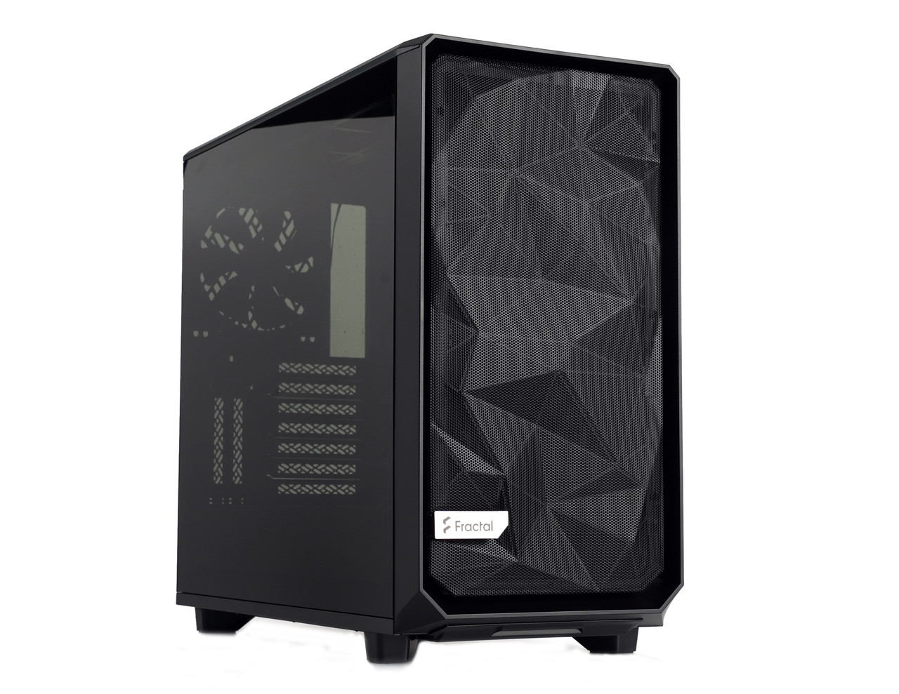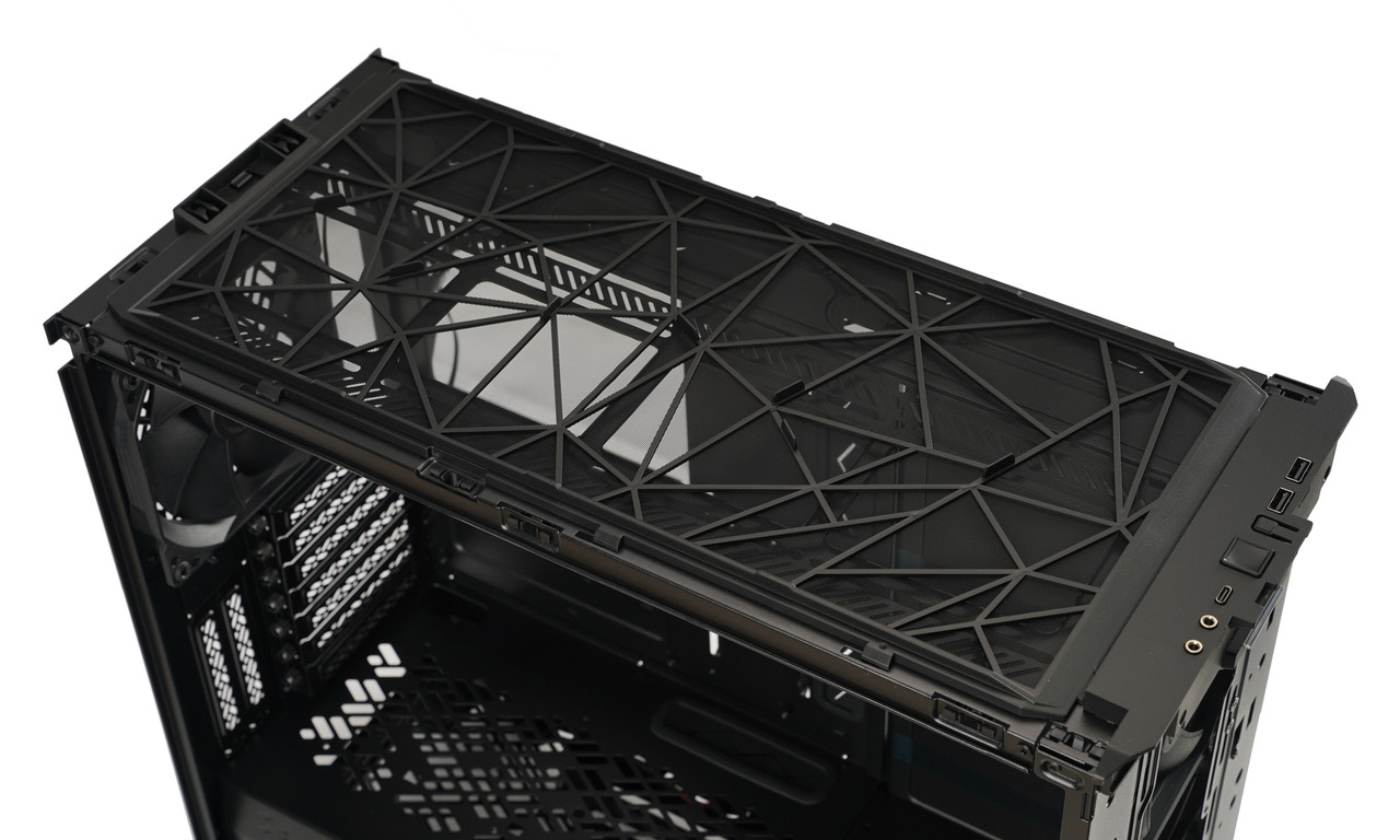 프랙탈 디자인 메시파이 2 시리즈는 전면 패널에 ‘angular mesh'(이하 앵귤러 메시) 디자인을 적용해서 차별화를 노렸다. 마치 창공을 은밀하게 비행하는 스텔스기를 떠올리게 만드는 형태인데 입체감을 부각시켜서 밋밋함 따위는 느껴지지 않는다.