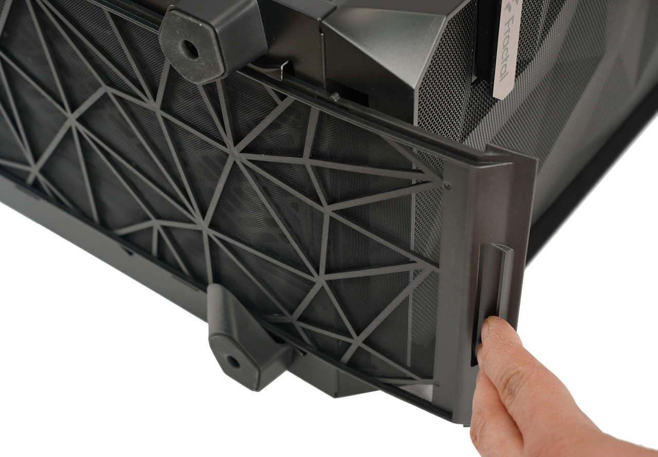 통풍구는 하단에도 있는데 여기에도 먼지 필터가 제공된다. PC를 바닥 쪽에 두는 경우 이쪽으로 먼지가 많이 유입되기 때문에 상단보다 먼지 필터를 조금 더 자주 청소하는 것이 좋다.