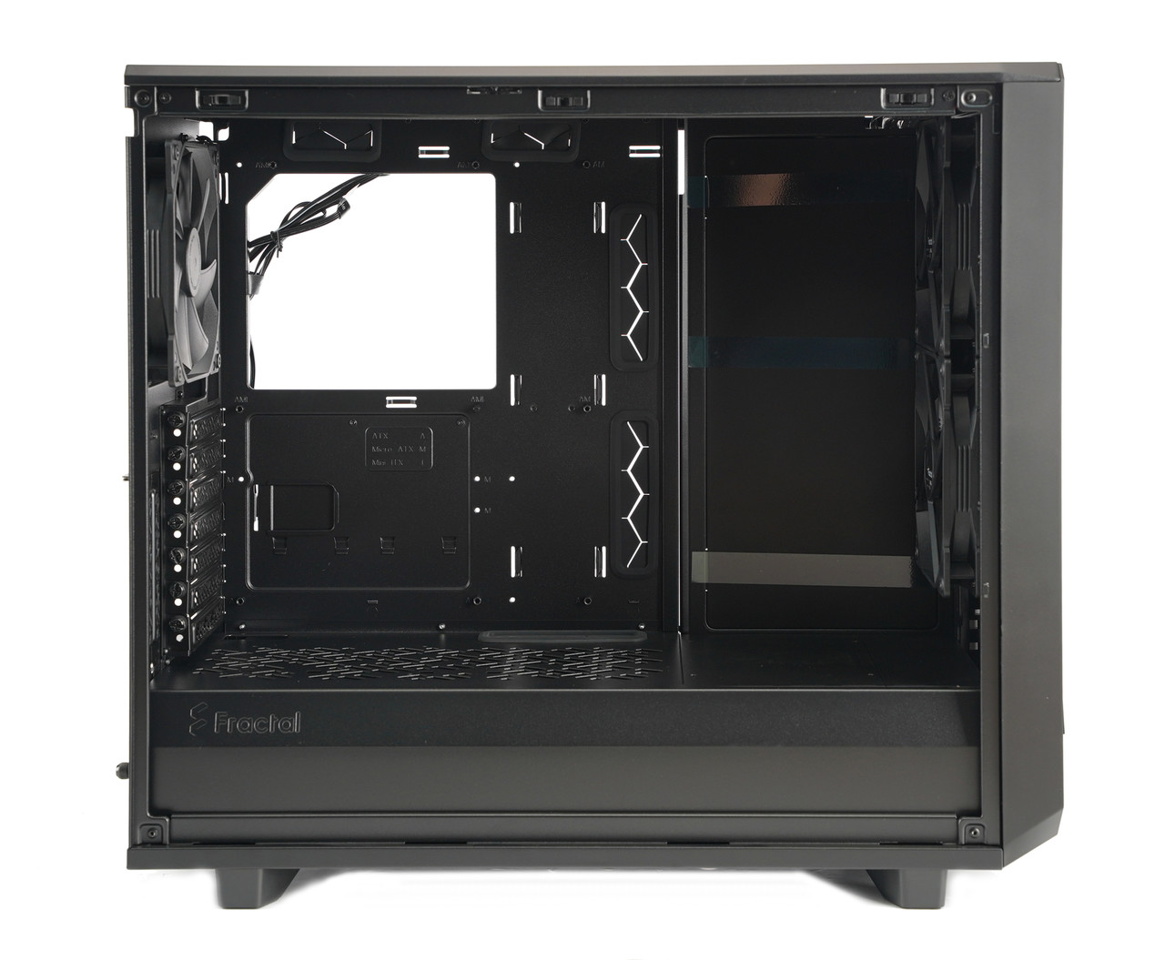프랙탈 디자인 메시파이 2 시리즈는 내부에 아담한 미니 ITX 폼 팩터 메인보드부터 우람한 E-ATX 폼 팩터 메인보드까지 여러 가지 규격 메인보드를 장착할 수 있다.