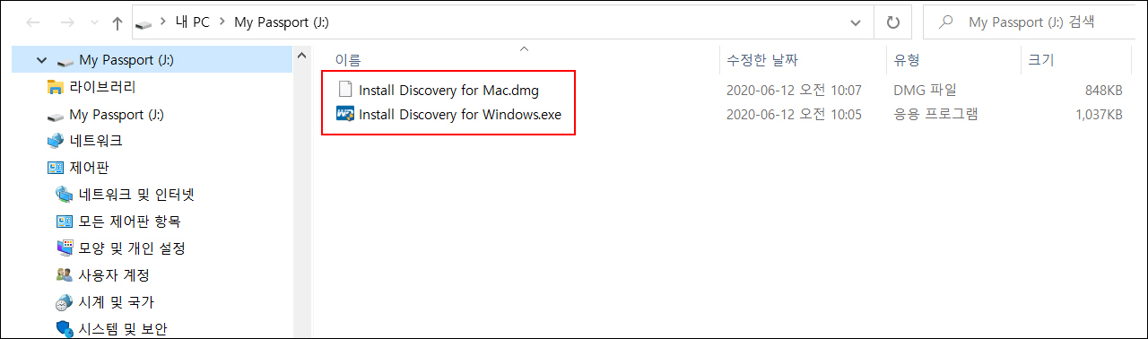WD 마이 패스포트를 PC에 연결하고 드라이브를 살펴보면 ‘Install Discovery…’로 시작하는 파일 2개가 보인다. WD의 외장 스토리지 전용 유틸리티인 ‘WD Discovery’(이하 WD 디스커버리) 윈도우 버전과 맥 버전 설치 파일이다. 두 가지 중 사용자의 PC에 알맞은 것을 설치하면 된다.