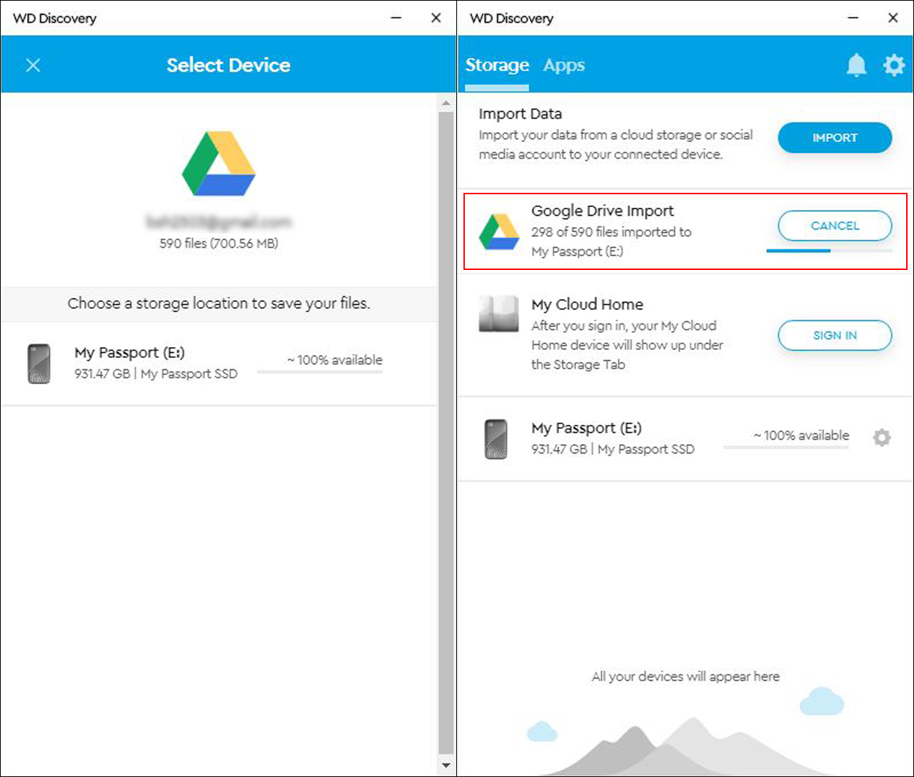 한편 요즘에는 클라우드 스토리지를 이용하여 데이터를 보관하는 사람들도 많은데 WD 디스커버리를 이용하면 거기에 있는 데이터를 WD 마이 패스포트에 간편하게 저장할 수 있다.