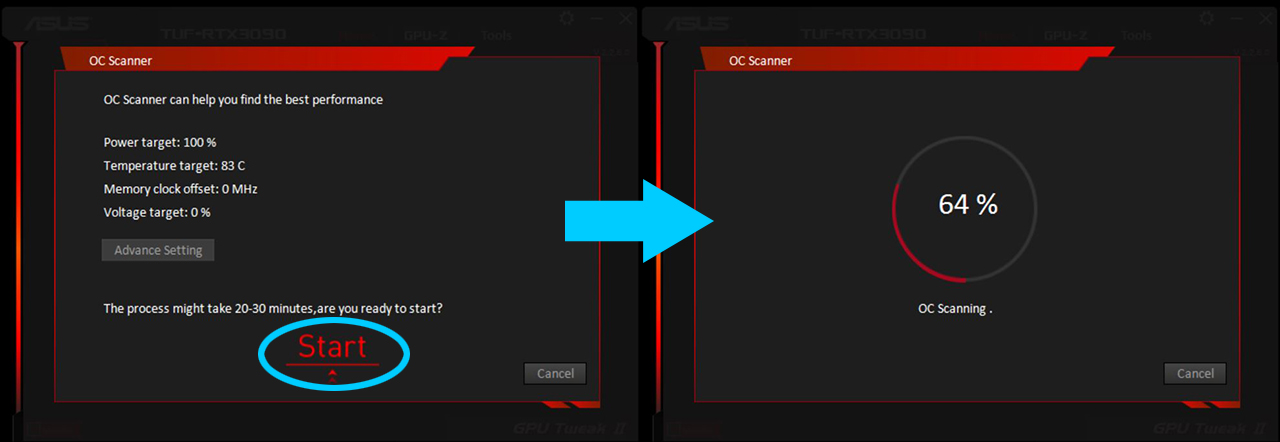 OC 스캐너 항목을 클릭하면 설정 화면이 나온다. ‘Start’ 항목을 클릭하면 자동으로 그래픽카드 오버클럭 잠재력 진단 작업이 진행된다.