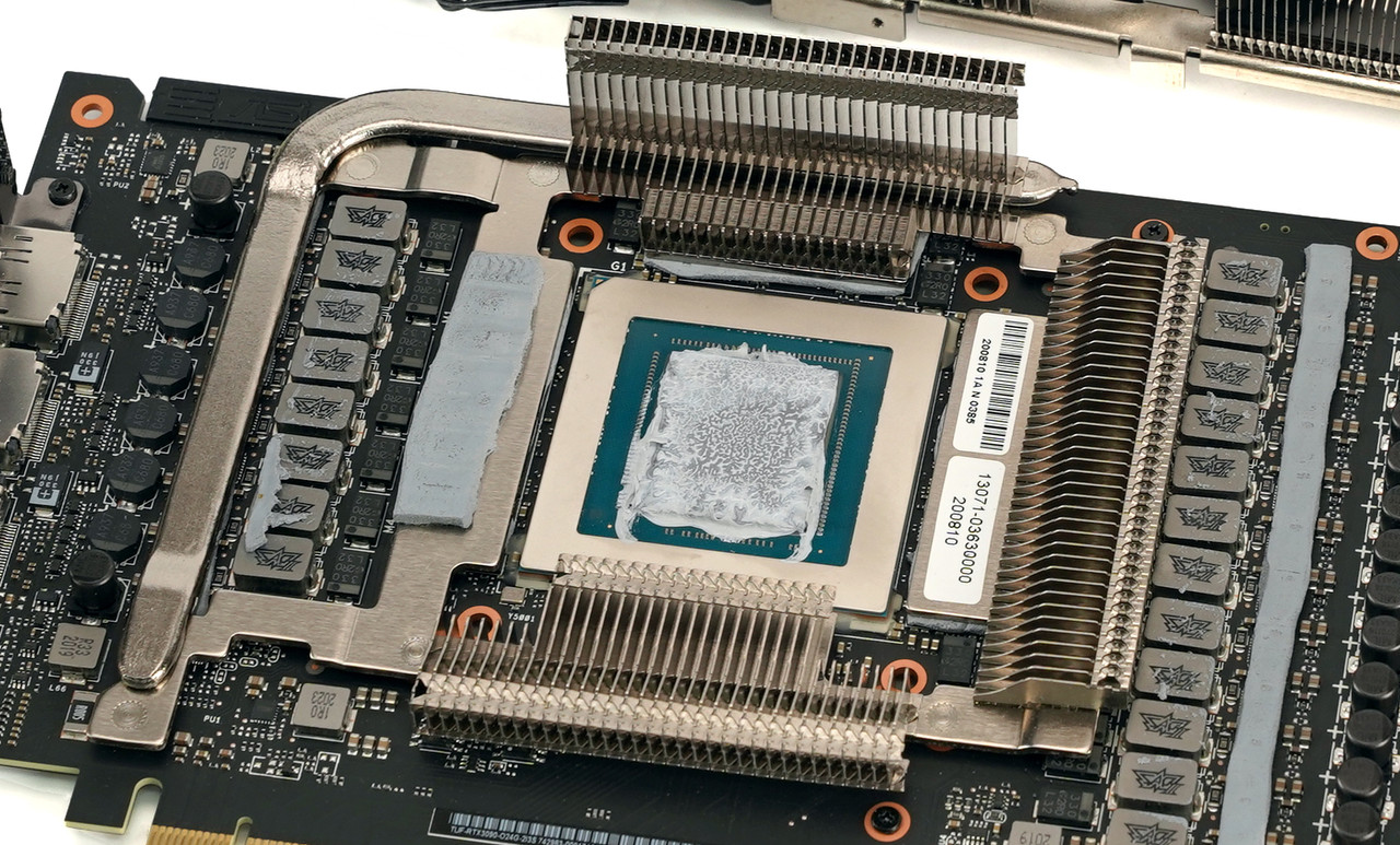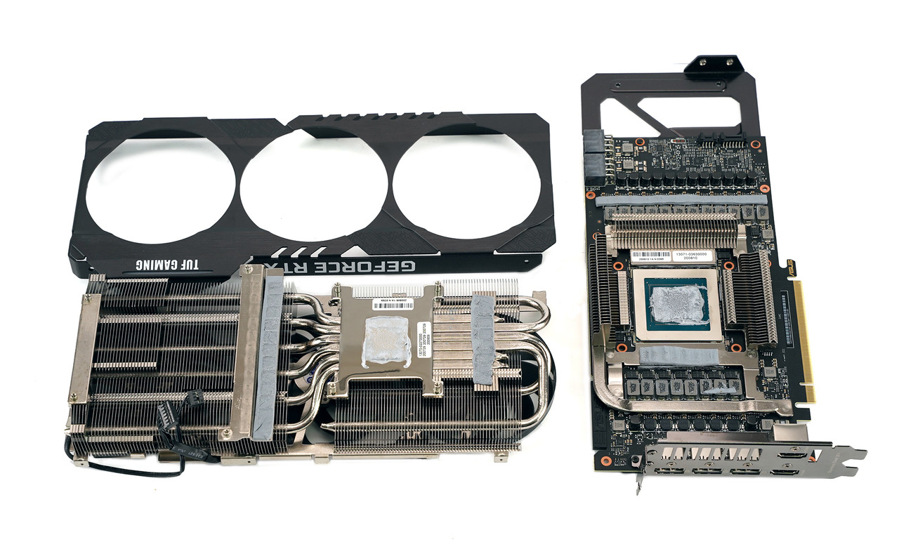 독특하게도 GPU 주변에는 방열판 달린 히트 파이프가 별도로 부착되었는데 VRAM(비디오 메모리) 전용이다. 그래픽카드는 GPU 뿐만 아니라 VRAM도 발열이 심한 편이지만 대개 VRAM에는 방열판만 부착하는데 에이수스 TUF 게이밍 지포스 RTX 3090 OC는 히트 파이프까지 추가된 것이다.