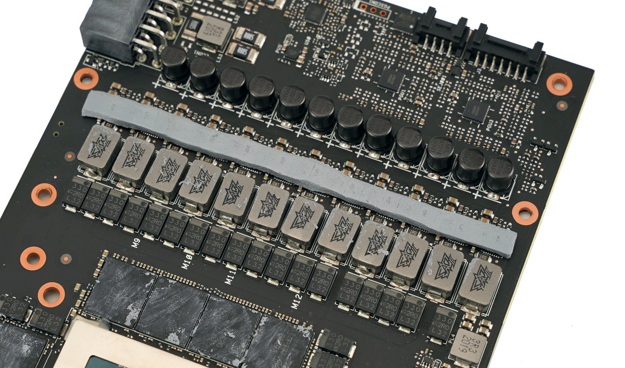 무려 24GB에 달하는 GDDR6X 메모리가 장착되었기 때문에 웬만한 하이엔드(고급형) 그래픽카드보다도 VRAM 발열이 심한 점을 감안해서 제조사인 에이수스가 더 신경 쓴 것으로 보인다.