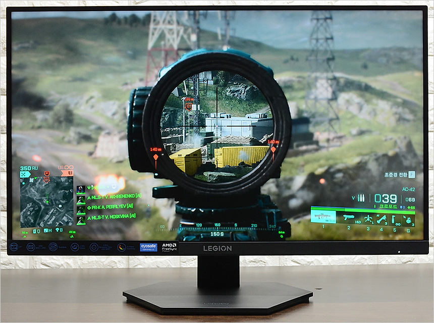또한 대형 조준선을 지원해 사격 정확성을 높일 수 있었으며 어댑티브 싱크를 지원해 화면찢어짐 등으로 인한 불편없이 게임에 몰입할 수 있었다. 뿐만 아니라 FPS1 모드와 다크부스트를 통해 시인성을 개선해 준 후 암부에서도 캐릭터와 배경을 확연하게 구분할 수 있었다. (타이머도 지원해 배틀로얄 류의 게임에서 유용하게 활용할 수 있다.)