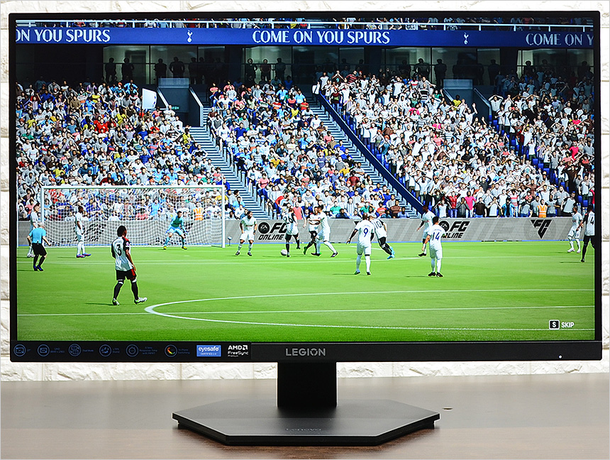 4K 동영상을 이용해 테스트를 진행하고 있는 모습으로 고해상도 모니터 답게 진하고 선명한 색감을 보여주었다. 빠른 응답속도 지원으로 스포츠 영상에서 잔상이 거의 눈에 띄지 않았으며 슬림 베젤이 적용되어 높은 몰입감을 경험할 수 있었다. 고화질 영상을 즐기는 유저들이라면 만족스럽게 모니터를 사용할 수 있을 것이다.