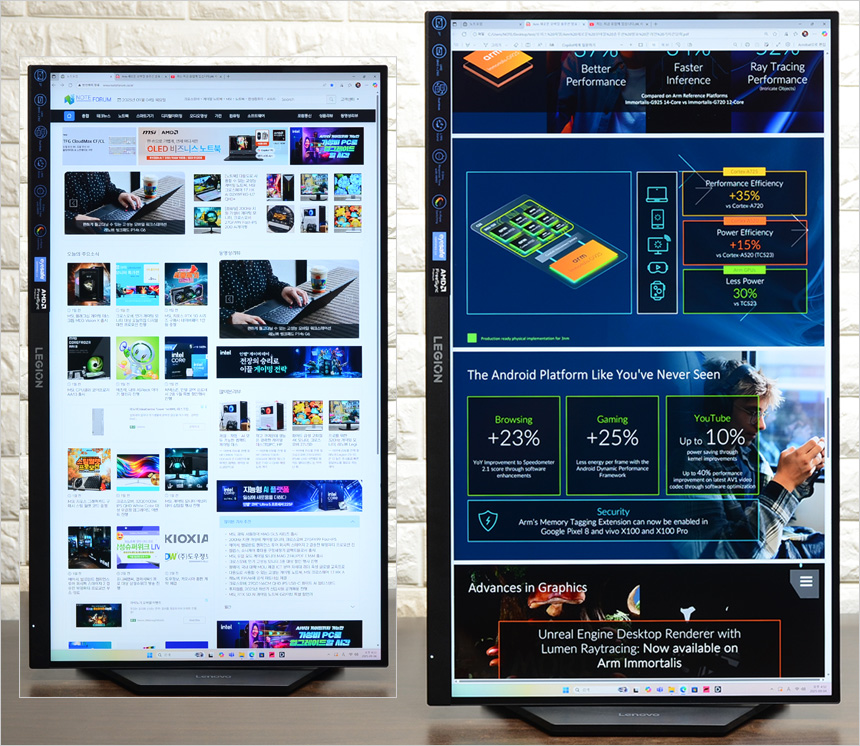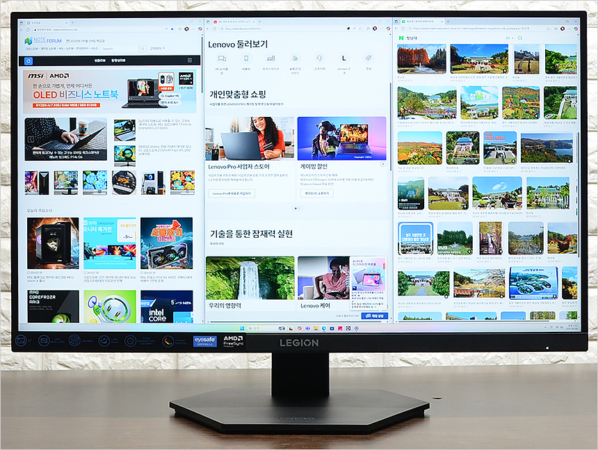 듀얼모드 설정이 복잡하거나 여러 단계를 거치게 되면 활용율이 떨어질 수밖에 없는데 레노버 Legion 27U-10 은 핫키를 지원해 손쉽게 듀얼모드를 설정할 수 있었다. (후면의 버튼만 몇 번 눌러주면 바로 모드가 변경된다.) 개인적으로 이 부분을 꼭 칭찬해 주고 싶다.