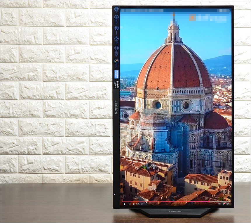 멀티스탠드 지원으로 사용성을 높인점에도 좋은 점수를 주고 싶다. 각도 조절의 한계가 있는 대부분의 모니터와 달리 사용자에 맞게 모니터 각도를 조정할 수 있었으며 피벗도 가능해 전자출판과 같은 세로에 특화된 작업도 편하게 실행할 수 있었다. (좌우 모두 돌아가도록 설계해 케이블로 인한 불편을 최소화 할 수 있었다.) 유튜브 세로영상을 즐기는 유저들이라면 특히 유용하게 사용할 수 있을 것이다.