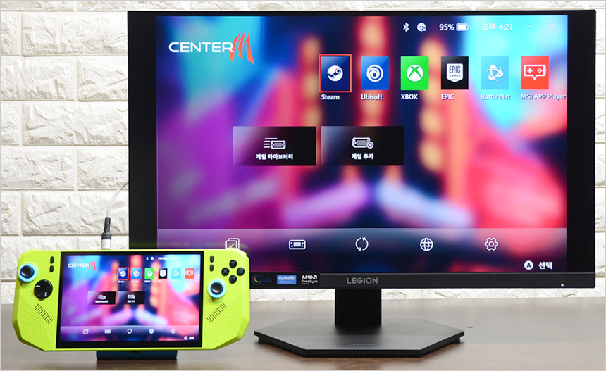 다양한 단자를 지원해 편의성을 높인점도 칭찬하고 싶다. 2개의 HDMI 단자를 지원해 PC 뿐만 아니라 게임콘솔을 연결하거나 고성능 노트북을 게이밍 디바이스로 변신시킬 수 있으며 최근 많은 유저들이 사용하는 게이밍 UMPC와 연결해 대화면으로 게임을 즐길 수 있다.
