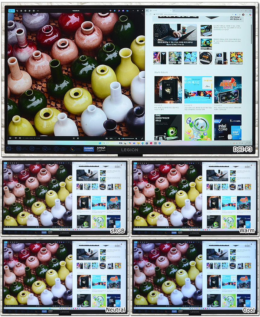 색온도 설정 기능도 제공해 게임이나 컨텐츠에 맞는 색감을 사용자가 조정할 수 있다. (사진상으로는 큰 차이가 없어 보이지만 실제로 보면 차이가 느껴진다.)