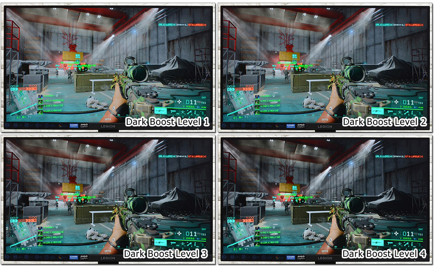 Dark Boost 기능을 지원해 야간이나 실내맵에서 시인성을 높일 수 있다. 너무 밝으면 선명도가 떨어질 수 있으니 게임 환경에 맞게 값을 지정해 활용하기 바란다.