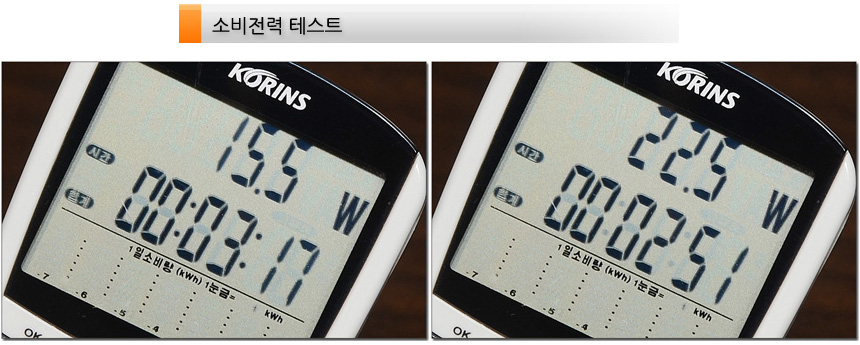 소비전력 테스트를 진행하고 있는 모습으로 4K 모니터임에도 소비전력이 상당히 낮은 것을 확인할 수 있었다. (50% 밝기 15.5W, 100% 밝기 22.5W) 전기세 걱정없이 사용할 수 있을 것이다.