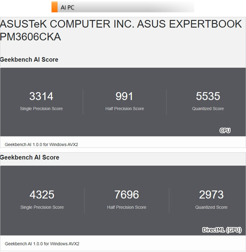 AI 전용 벤치마크 툴을 이용해 AI 성능 테스트를 진행하고 있는 모습으로 AI 에 특화된 CPU가 탑재된 모델답게 높은 스코어를 보여주었다. 생성형 AI 애플리케이션으로 부드럽게 실행할 수 있을 것이다.