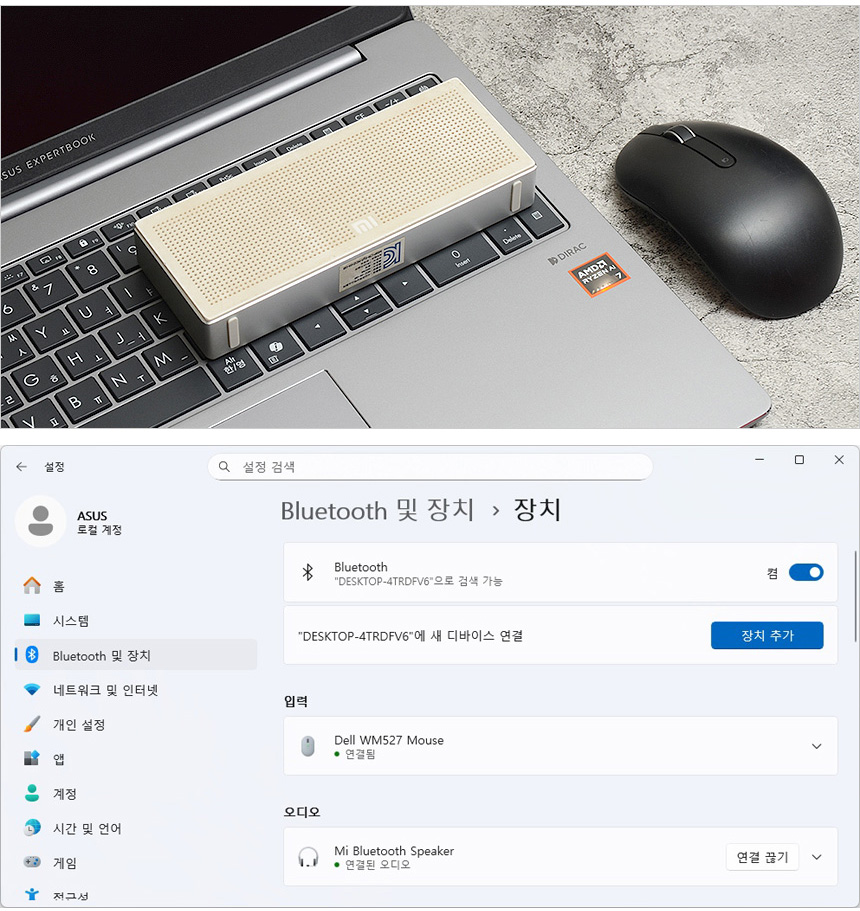 블루투스를 지원해 다양한 액세서리를 무선으로 연결해 활용할 수 있다. 상단의 사진은 외장 스피커나 마우스 페어링 테스트를 진행하고 있는 모습으로 원활하게 연결되는 것을 확인할 수 있었다.