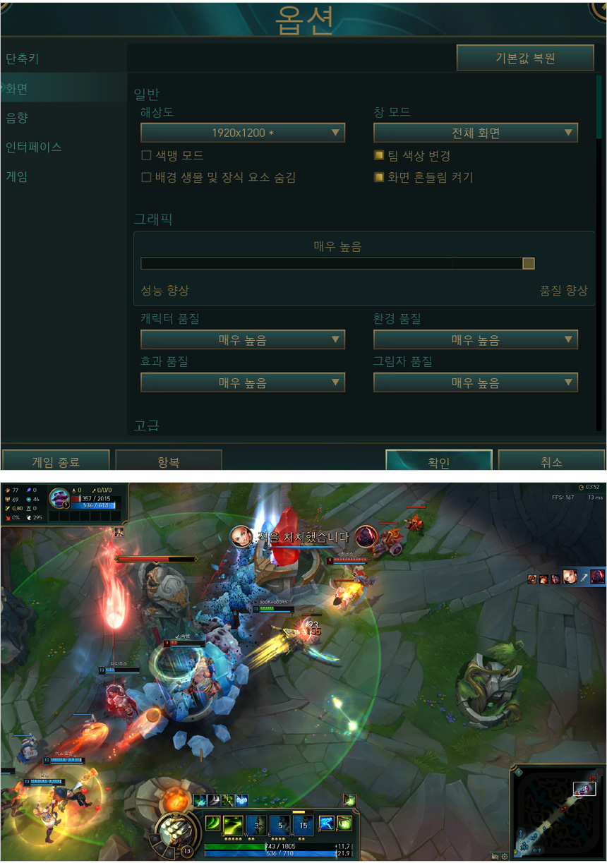 LOL을 매우 높음 옵션에서 플레이 하고 있는 모습으로 (연습 모드) 145-232 프레임을 보여주어 쾌적하게 게임을 즐길 수 있었다. 멀티 게임도 원활하게 플레이 할 수 있을 것이다.