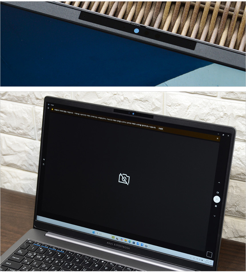프라이버시 셔터를 지원하고 있다. 사진과 같이 셔터를 밀어주면 카메라가 가려져 해킹등으로 노트북 조작이 가능해진다 하더라도 웹캠을 통한 기업 정보 노출이나 사생활 침해를 미연에 방지할 수 있다. 참고로 이 제품은 기업 보안을 위한 통합 보호 기능인 ASUS Expert Guardian 이 적용된 모델로 무단 접근 방지를 위한 BIOS 보안 기능인 BIOS Lock를 비롯해 하드웨어 기반의 보안칩 TPM 2.0 이 내장되어 있고 윈도우 탑재 모델에는 맥아피+ 프리미엄 1년 맴버쉽을 무료로 제공해 소중한 데이터를 안전하게 보호할 수 있다.