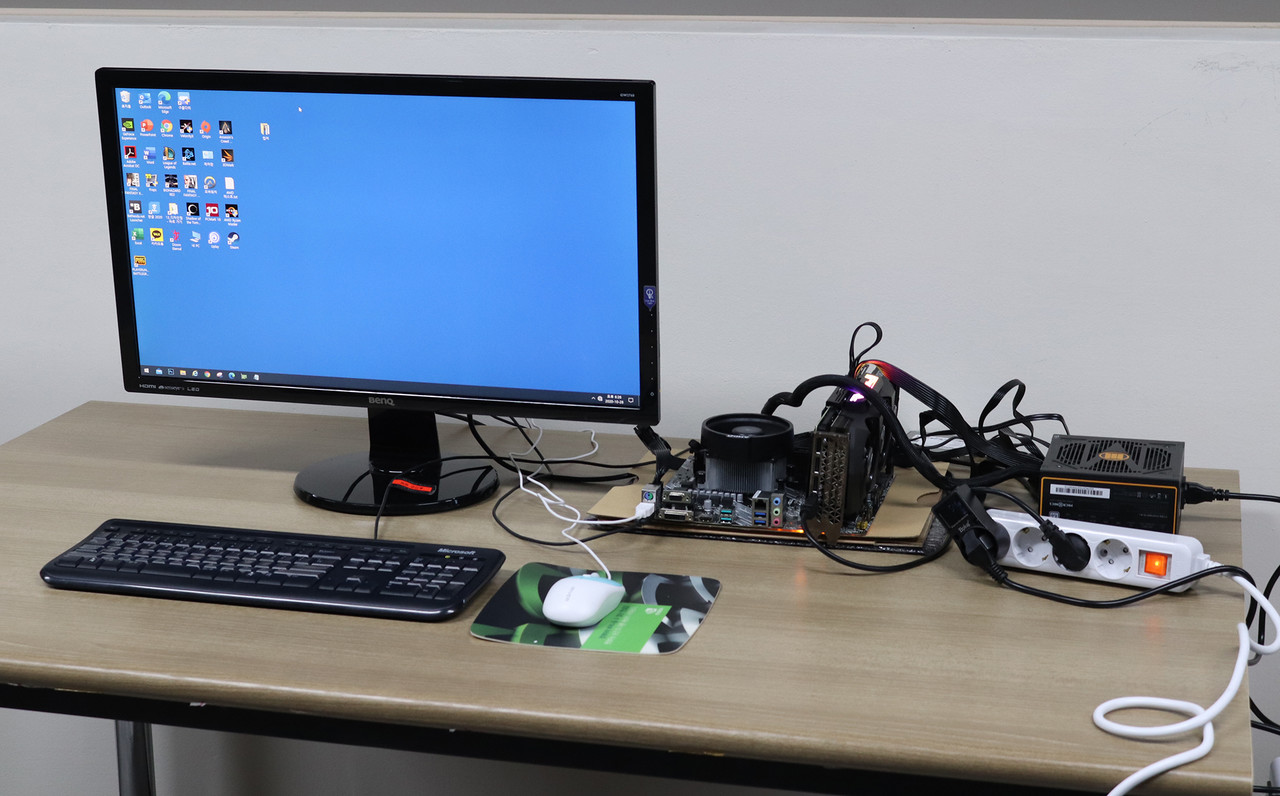우선 윈도우 10 화면에 진입한 후 아무런 작업도 하지 않은 상태에서 소비전력을 재보았는데 40~50W 사이를 유지하였다. 집이나 사무실에서 흔히 사용하는 기다란 형광등 소비전력이 보통 30W 정도이므로 PC가 유휴 상태일 때는 소비전력이 그렇게 크지 않다는 것을 알 수 있다.