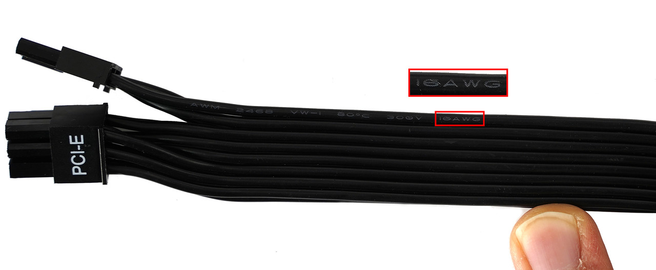 대다수 파워 서플라이는 18AWG(Amerian Wire Gauge, 미국 전선 규격) 케이블을 이용하는데 살펴보면 매우 얇다는 것을 알 수 있다. 물론 얇다고 해도 여러 개를 사용해서 PC 부품마다 필요한 만큼 연결하기 때문에 큰 지장은 생기지 않지만 조금이라도 더 두껍다면 파워 서플라이 작동 시 이점으로 작용한다.