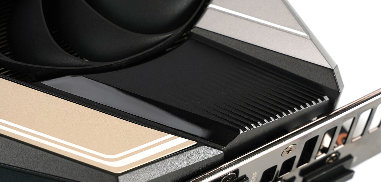 그래픽카드 후면부에는 한국적 디자인은 없지만 알루미늄 백플레이트가 장착되었다. 따라서 메인보드에 그래픽카드를 설치하고 시간이 오래 지나더라도 무게 때문에 기판이 휘는 문제를 방지한다. 끝 부분에는 그래픽카드에서 발생한 열이 잘 빠져나가도록 배기구도 마련되어 있다.